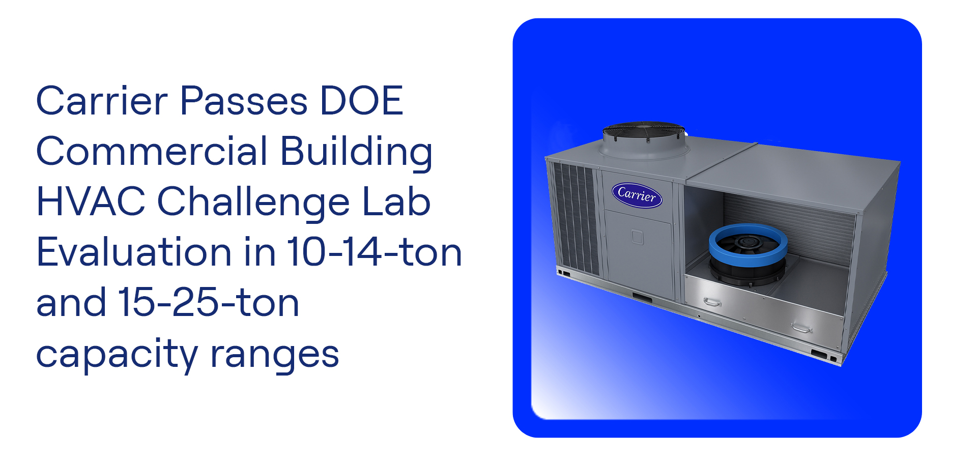 Carrier Passes DOE Commercial Building HVAC Challenge Lab Evaluation in 10-14-ton and 15-25-ton capacity ranges