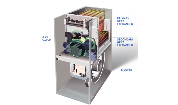 Here’s how a gas furnace works: Natural gas is piped into the furnace where it is burned in a sealed chamber. Heat output from combustion is captured by a metal heating element called a heat exchanger inside the furnace. At the same time, a powerful fan blows cool indoor air across the heat exchanger to absorb the heat. That air circulates back to your home through ductwork to create a comfortable stream of heated air into your living spaces.